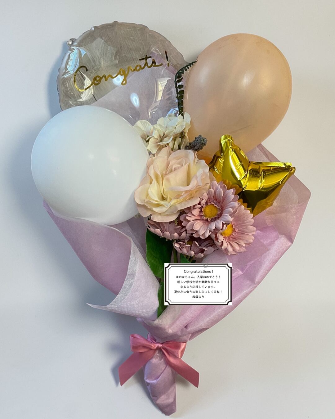 ・選べるバルーンメッセージ:フリーメッセージご希望の場合は備考欄へご記入ください(アルファベット10字以内)/文字のフォント・色はおまかせでお願いします
