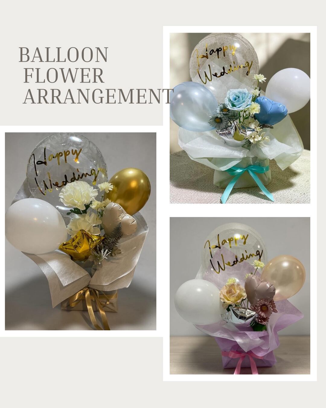 ・入荷状況により、バルーンの色味、アーティシャルフラワー素材やリボンが若干異なる場合がございますが、雰囲気を損なわないものを使用致します