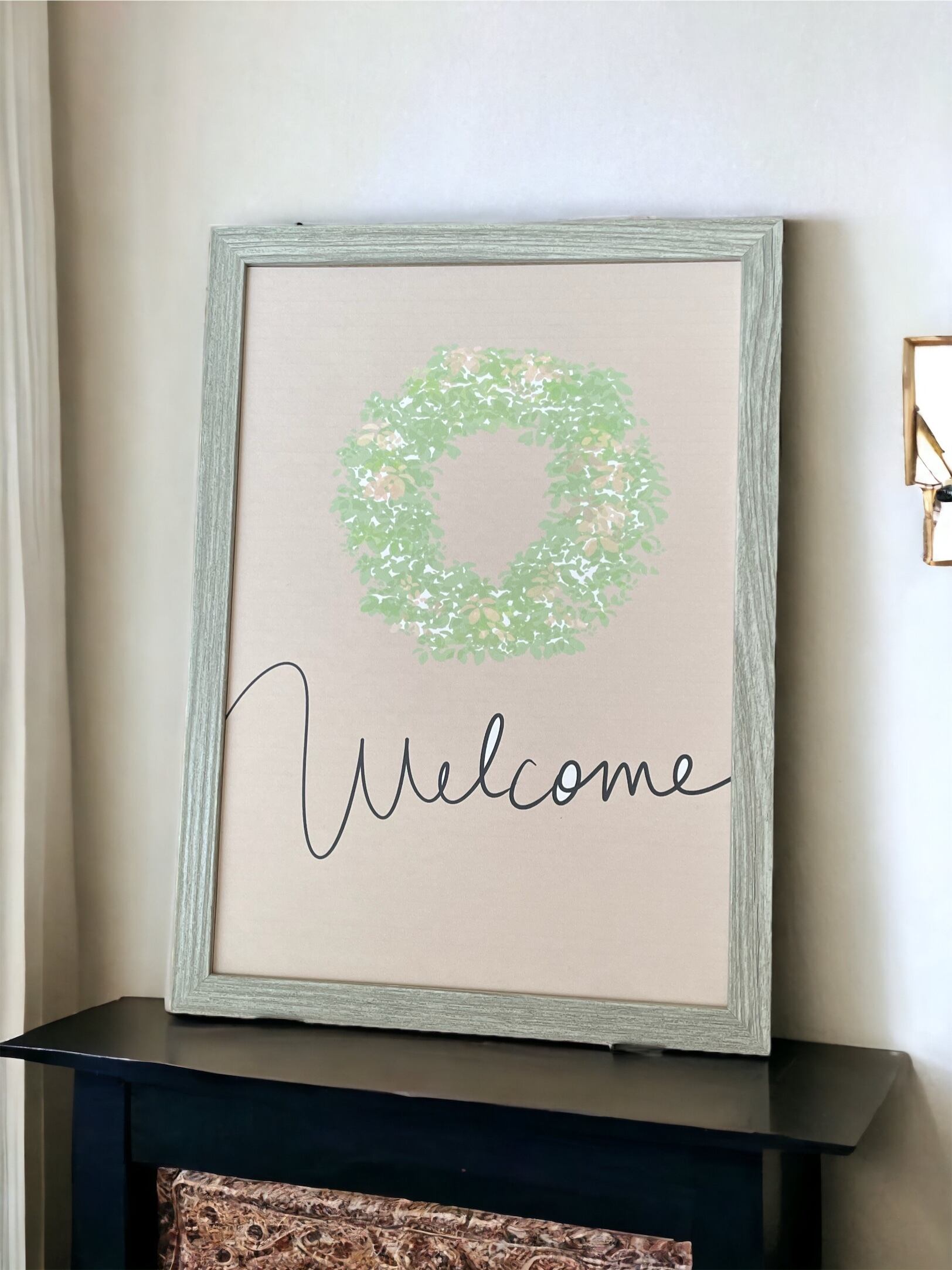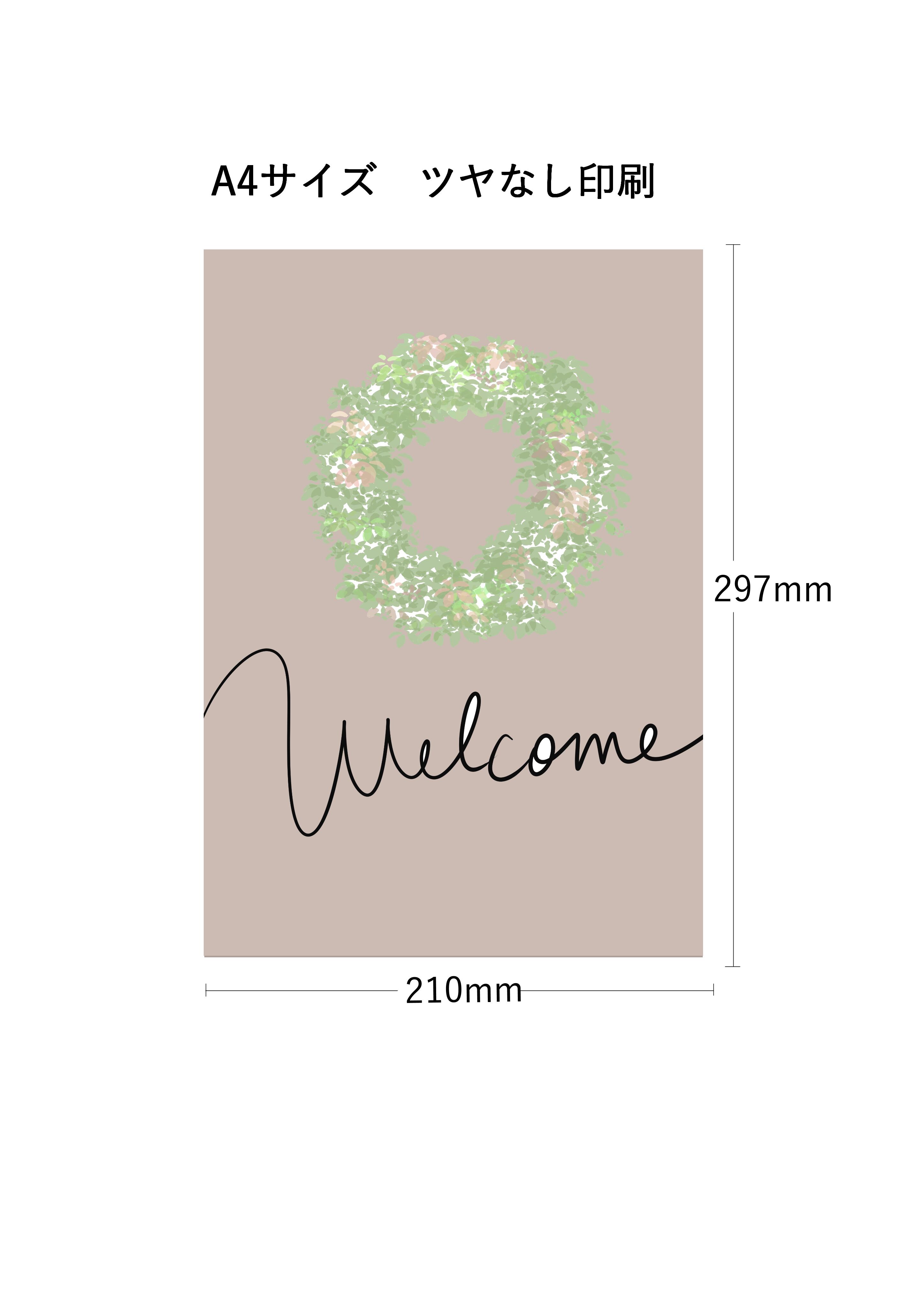 インテリア アートポスター WELCOME ベージュ×グリーン A4サイズ縦