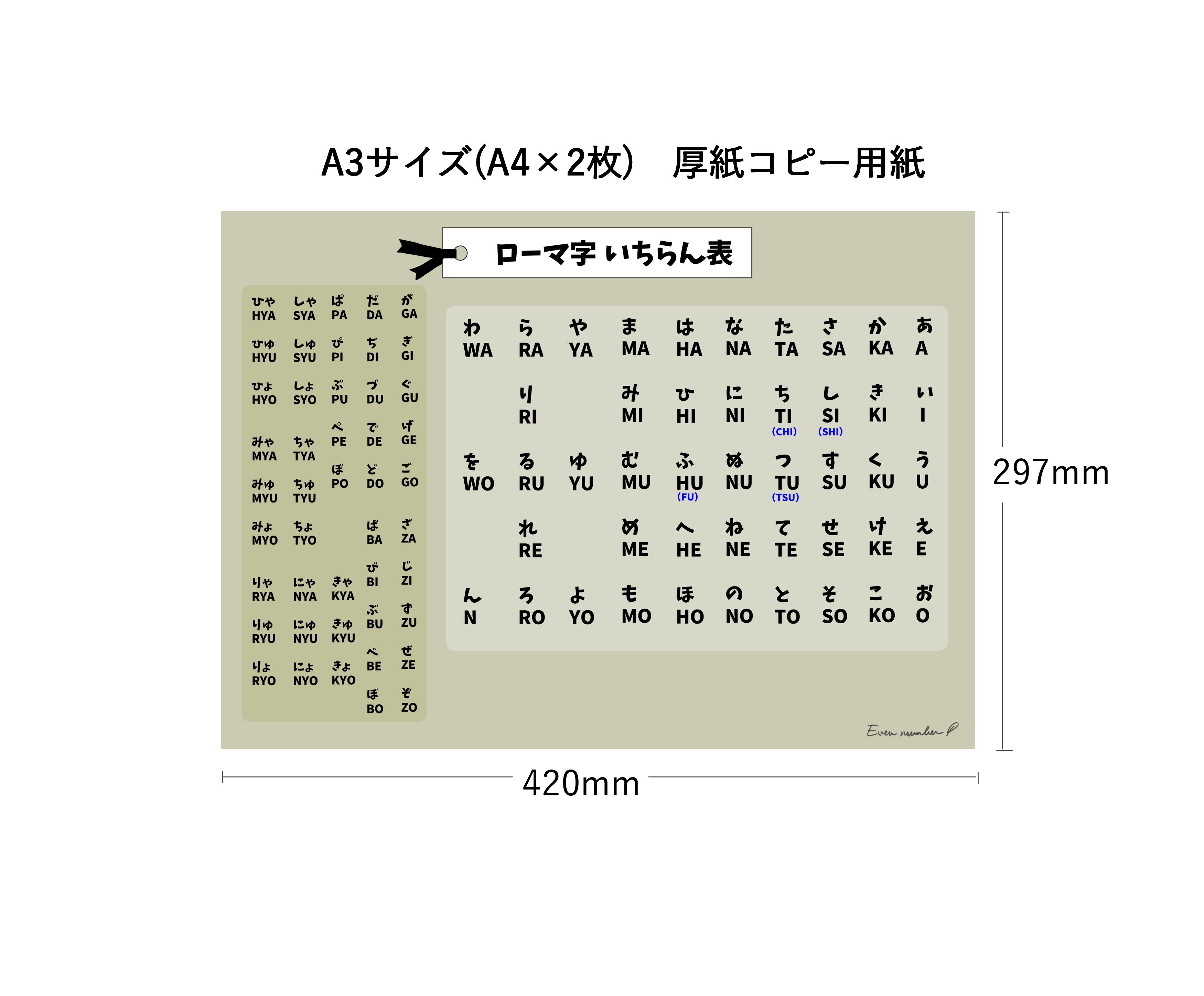 ローマ字いちらん表/A3サイズ