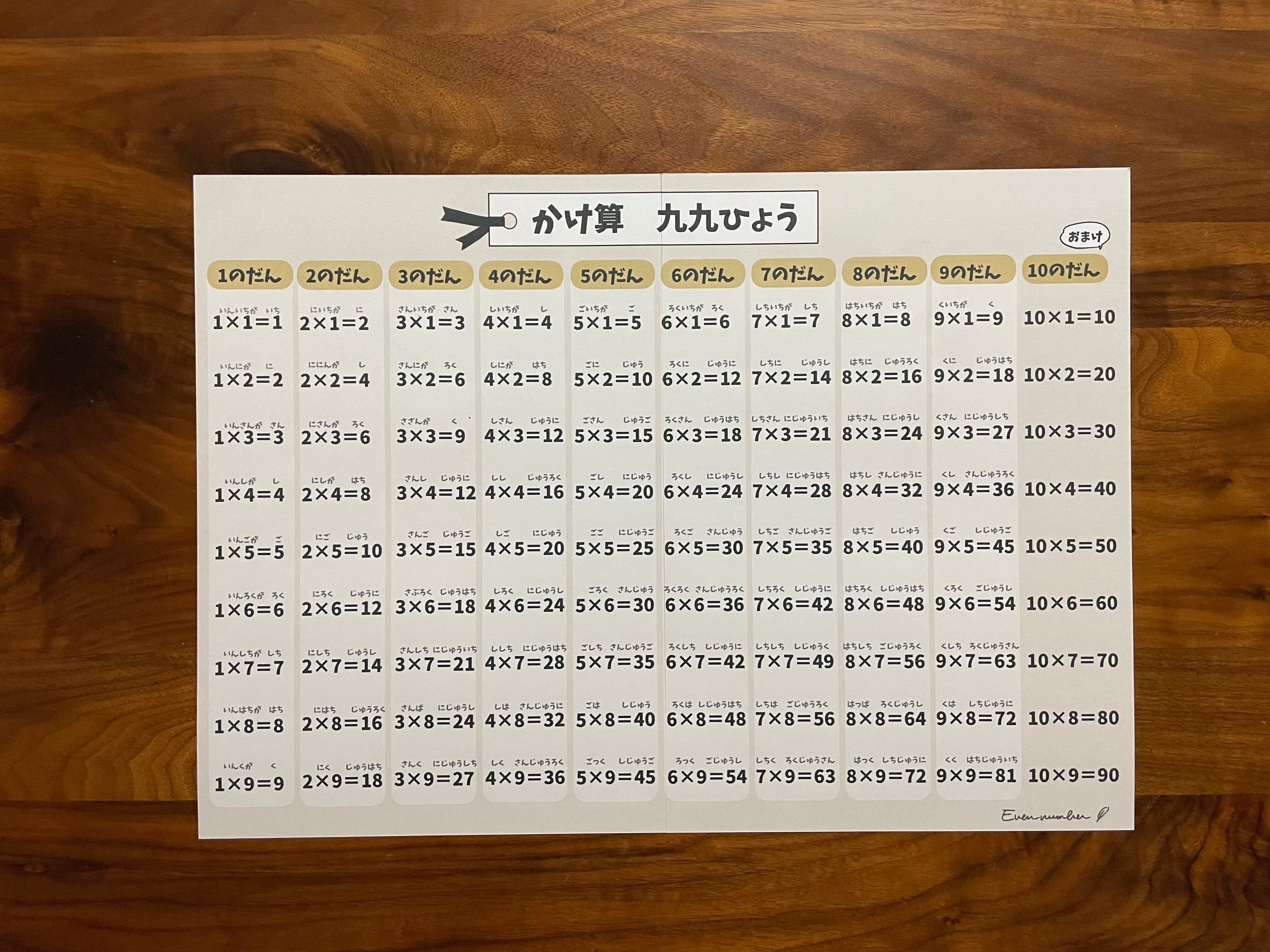 お勉強ポスター かけ算 九九表 A3サイズ シンプル